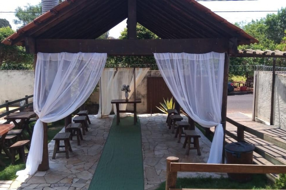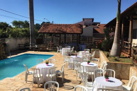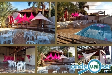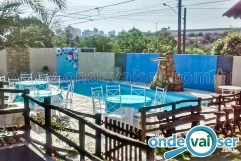 Possui 1 piscina (38.600 litros) com cascata, área principal coberta para 80 pessoas, 1 dormitório com 3 beliches com colchonete para 6 pessoas, 3 sanitários com duchas, cozinha com uma geladeira , refrigerador vertical, fogão industrial com forno (gás opcional), caixa térmica , churrasqueira, fogão à lenha, forno de barro, 19 mesas (0,70x0,70) e 50 cadeiras, 1 aparador em madeira ( 3,0 x 0,65), 1 mesa de madeira (1,90x0,90), 2 mesas carretel (0,80 diametro),3 banquetas de madeira (balcão) e 2 vagas internas de estacionamento . Ponto de referência: próximo à concessionária Honda.